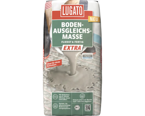 Produktmerkmale der Lugato Bodenausgleich- und Spachtelmasse Fliesst & Fertig Extra 20 kg